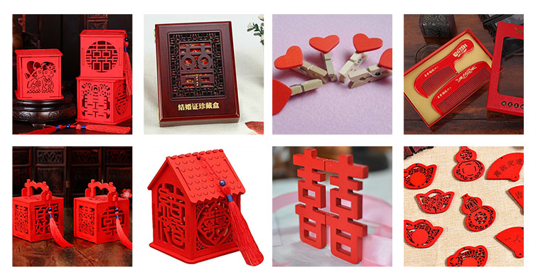木制婚慶用品激光加工樣品: